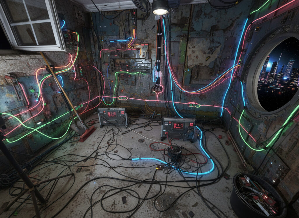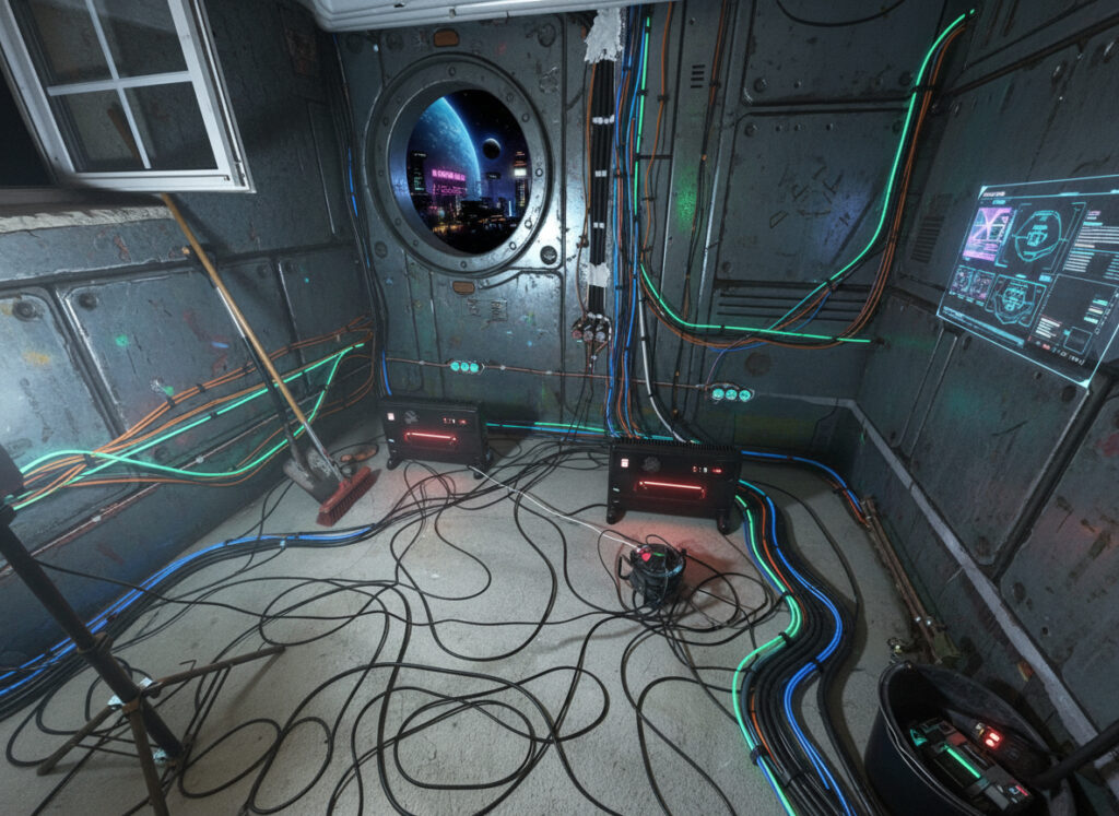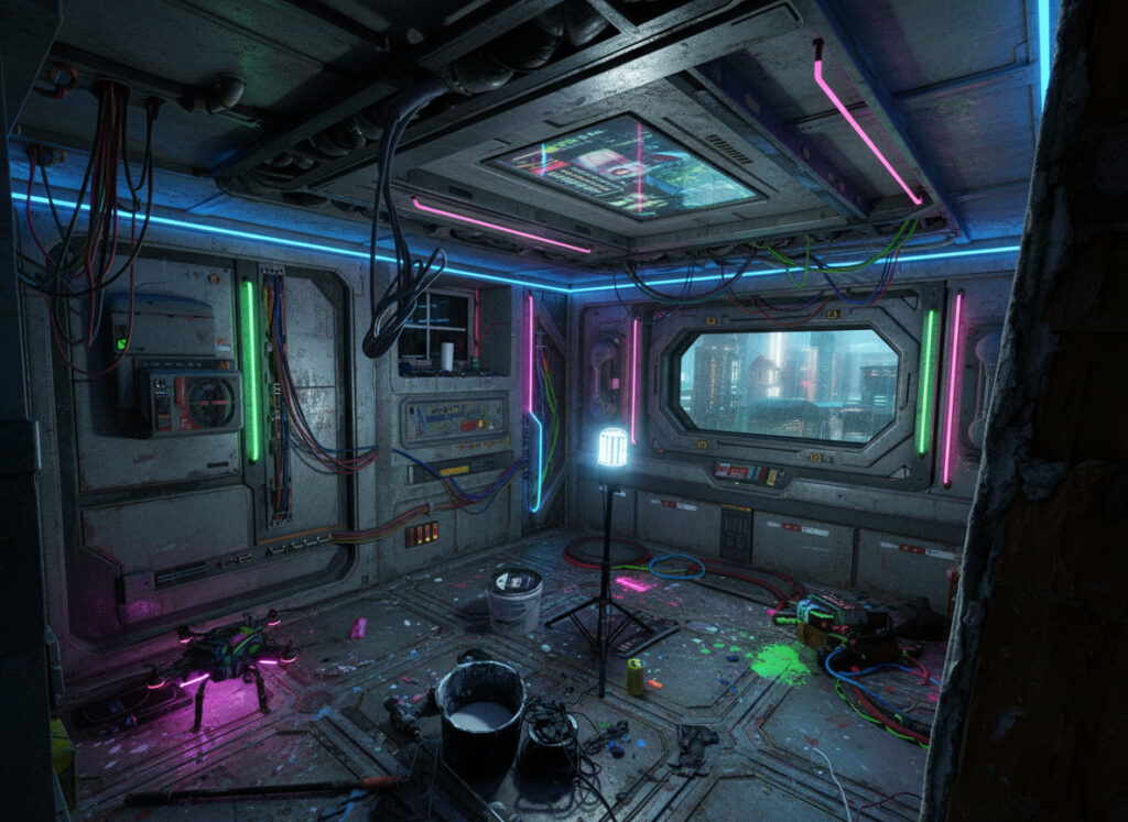 Nach erfolgreicher Reinigung und Entsorgung aller Tanks und Rohrleitungen wurde dieser Raum von Grund auf neu aufgebaut – stets unter Berücksichtigung der Missions-Vorgaben von Captain Hayes. Wichtiger Bestandteil hierbei war der „Mission-Monitor“, um die erzeugten Klänge auch visualisieren zu können.